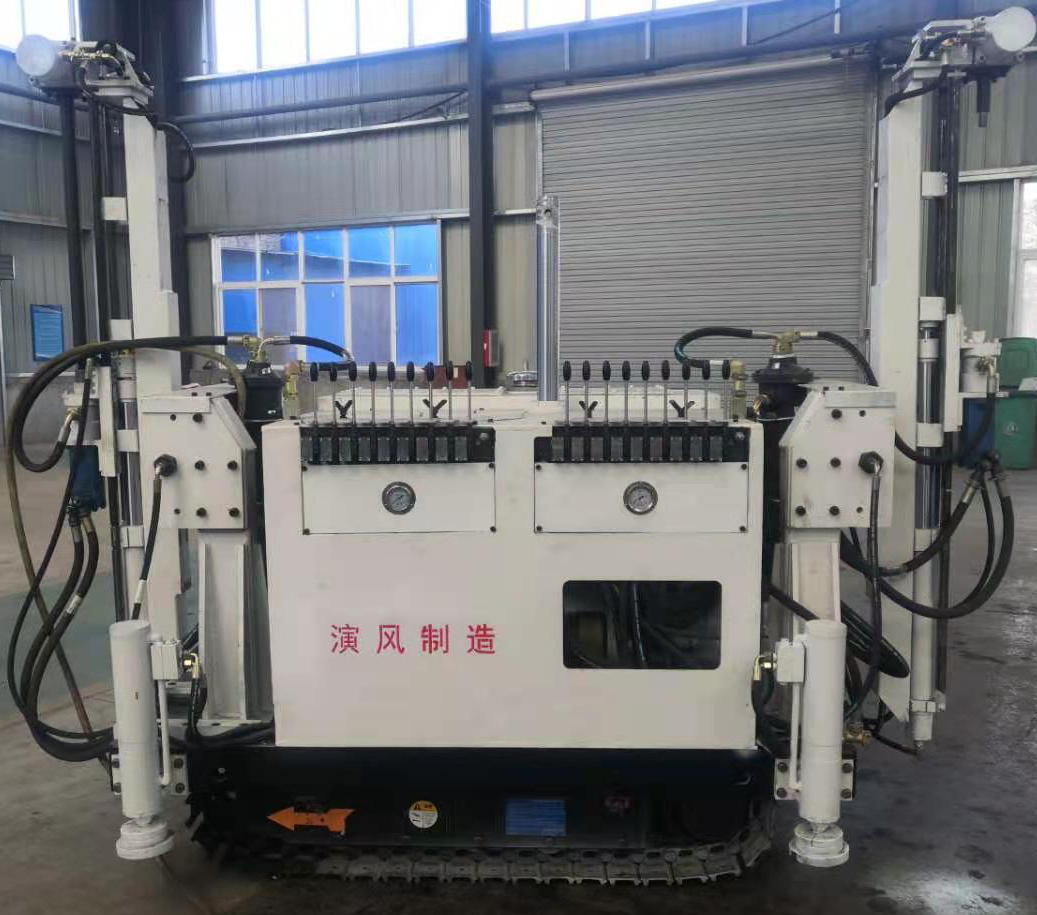 切頂鉆機(jī)采用底部四根支撐油缸,支撐切頂鉆機(jī)底部,將切頂鉆機(jī)底板調(diào)平;車(chē)體中間有頂部支撐油缸,與底部四根支撐油缸配合,將切頂鉆機(jī)固定在巷道內(nèi);給進(jìn)與起拔力大,提高了鉆機(jī)處理卡鉆事故的能力;采用雙動(dòng)力頭系統(tǒng),動(dòng)力頭間距大可調(diào)200mm,可適應(yīng)孔距為500、600、700(mm)的鉆孔工作,提高了切頂鉆機(jī)的工作效率;液壓原件采用先進(jìn)定制產(chǎn)品,性能穩(wěn)定,通用性強(qiáng),質(zhì)量可靠。