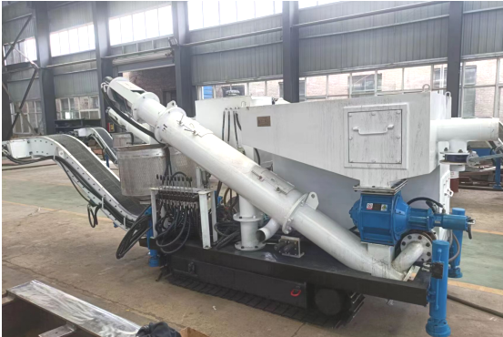 分離機(jī)具有結(jié)構(gòu)合理緊湊,操作簡(jiǎn)單,板鏈輸送機(jī)可180°扇面自由定位旋轉(zhuǎn)、鏈速0-500mm/s可調(diào),螺旋脫水輸送機(jī)0-100r/min可調(diào)、脫水效果好,具有液壓履帶行走功能,因此該裝備移動(dòng)方便。